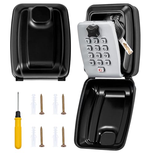 BenRich Outdoor Key Safe Wall Mounted, 4-Digit Combination Lock, Heavy Duty Weatherproof Key Storage Box for Airbnb, Care Workers, Cleaners, Office or Home Use (Black)