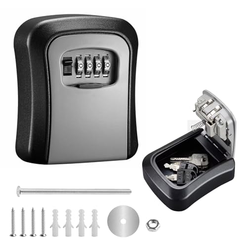 Jiujuda9 Key Safe Wall Mounted Outside, Key Lock Box Outdoor Indoor with 4 Digit Combination Waterproof Heavy Duty for Home Garage Office Security