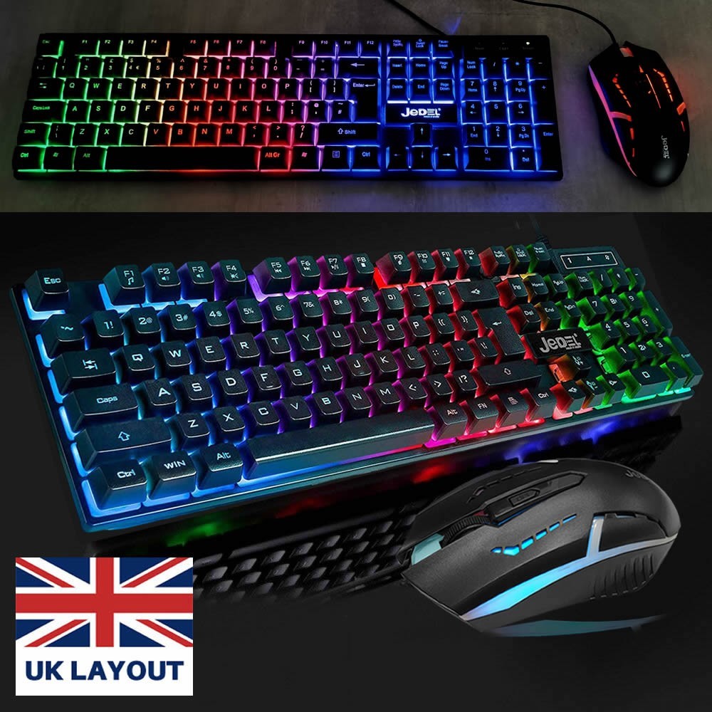 RGB LED Gaming Keyboard And Mouse Set USB For PC Laptop PS4 PS5 Xbox One UK