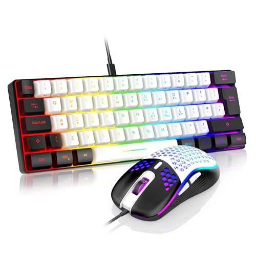 RedThunder 60% RGB Gaming Keyboard and Mouse Combo,UK Layout Ultra Compact Backlit Mini Keyboard, Lightweight 7200 DPI Cellular Optical Mouse, Portable Wired Gaming Set for PC PS5 Gamers(White-Black)