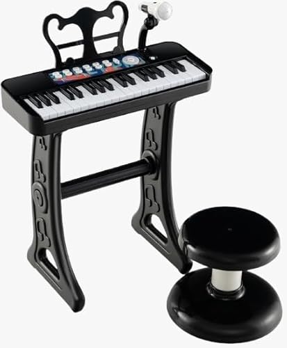 DIOXSTAR Kids Piano and Stool, 37-Key Keyboard, Music and Sound, Adjustable Microphone, Compact and Portable, Ensuring Long-Lasting Enjoyment, Imaginative Play, Black