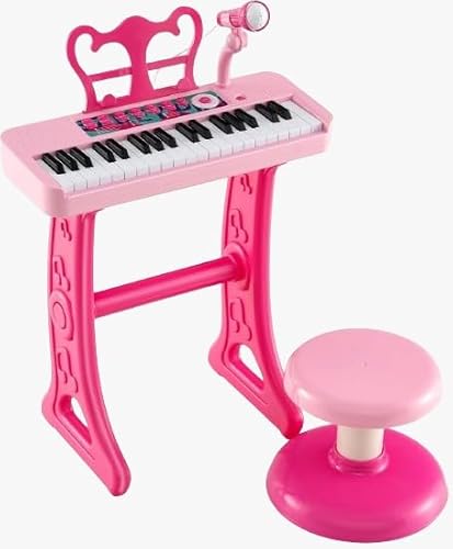 Kids Piano Keyboard, 37 Keys Portable Electronic Keyboard Piano with Music Book Bracket for Kids Toddlers Musical Instrument Toys Birthday Gifts for 3 4 5 6 7 8 9 Year Old Boys and Girls (pink)