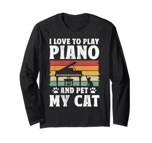 I Love to Play Piano and Pet My Cat Keyboard Classical Music Long Sleeve T-Shirt