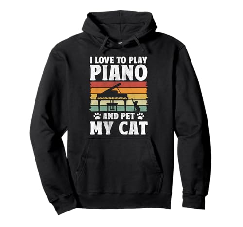 I Love To Play Piano And Pet My Cat Keyboard Classical Music Pullover Hoodie