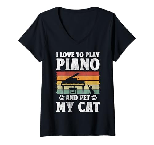 Womens I Love to Play Piano and Pet My Cat Keyboard Classical Music V-Neck T-Shirt