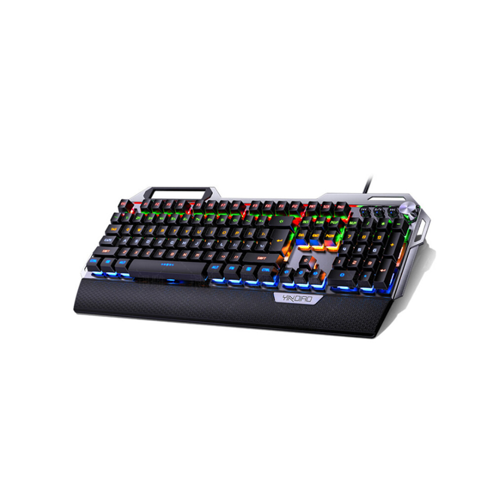 (Black Switch, light effect mode) 104 Keys Mechanical Keyboard RGB Backlit Punk E-sports Gaming Keyboard Absorbable Hand Rest