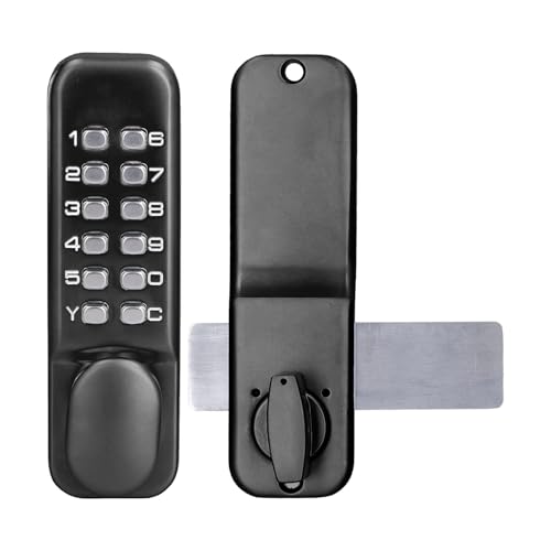 Digital Door Lock, Deadbolt Mechanical Combination Lock, Chrome Latch Keyless Entry Door Lock, Anti Theft Codes Lock for Bidirectional Gate Glass Door (Black)