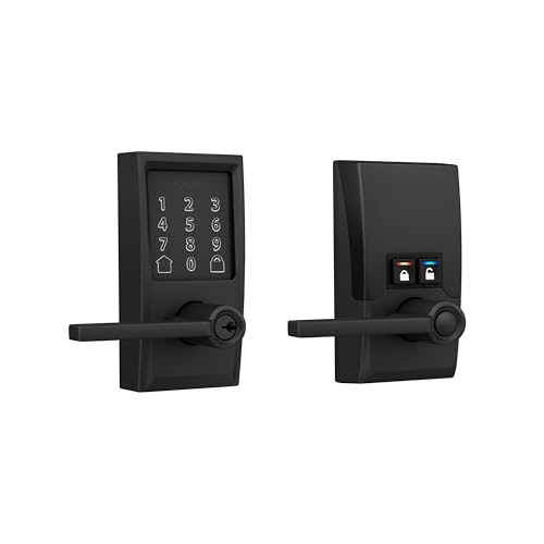 Schlage FE789WBCEN622LAT Encode Century WiFi Latitude Lever Smart Keyless Entry Touchscreen Door Lock, Matte Black