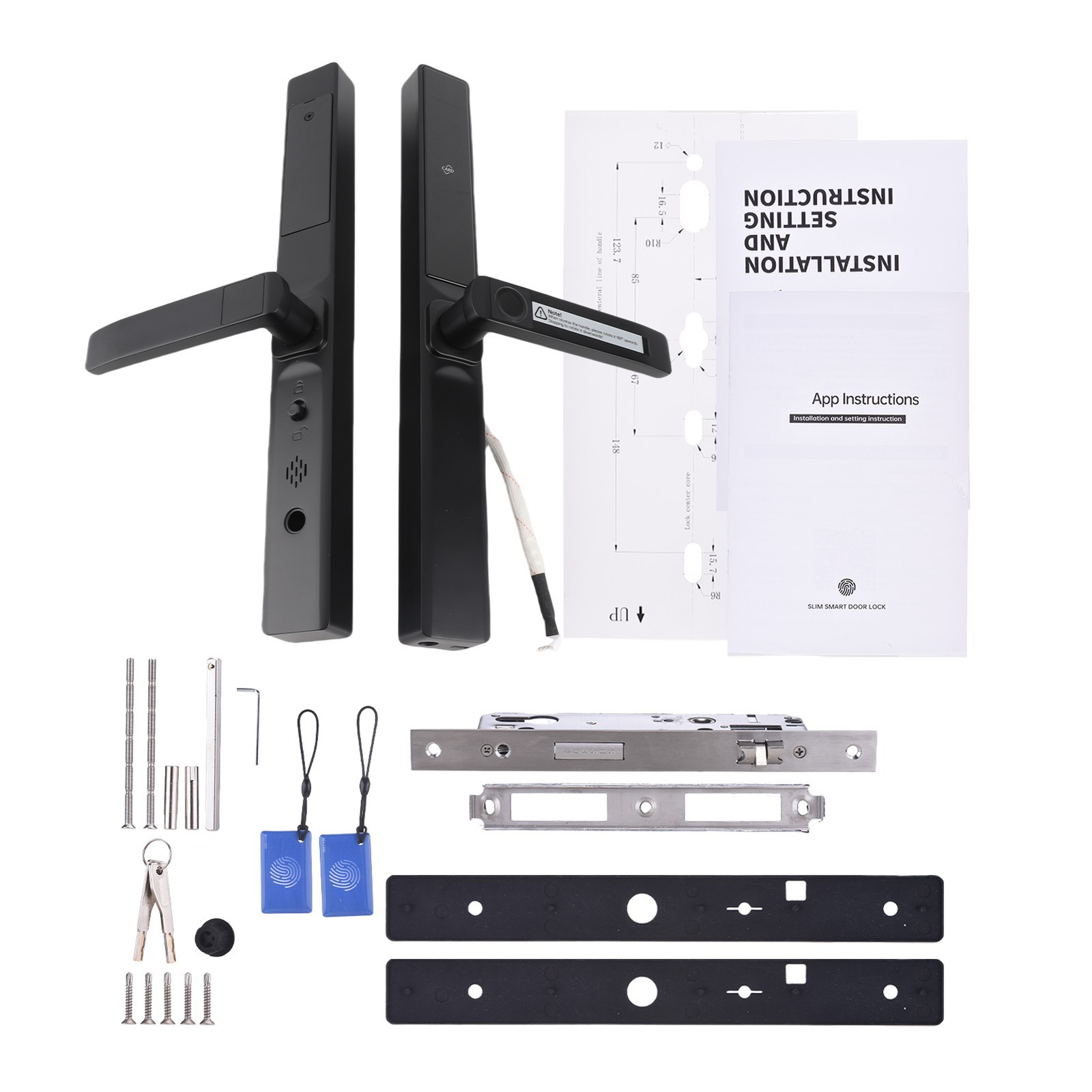 Ruveno Slim Smart Fingerprint Door Lock with Handles, Keyless Entry Door Lock, Bluetooth Fingerprint Keypad Card Keyless Unlock for Aluminum Swing Wooden Door(Black)