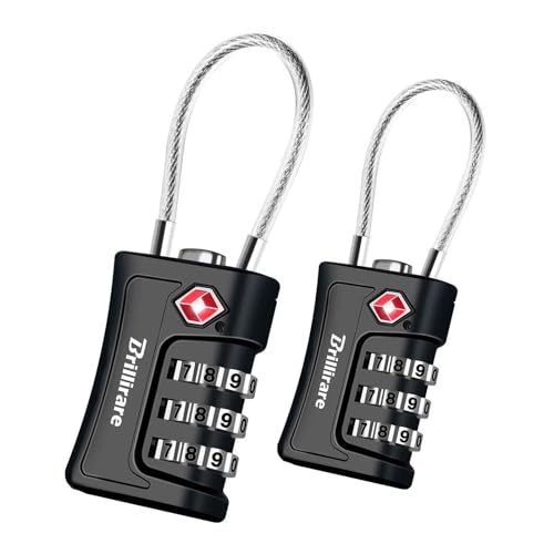 Brillirare 2 Pack TSA Approved Luggage Locks, Combination Travel Cable Padlock, 3-Digit Waterproof Lock, TSA Accepted Outdoor Keyless Resettable Lock for Lockers, Bags, Gym, Gate-Black