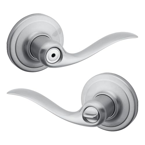 Kwikset Tustin Interior Privacy Door Handle with Lock, Door Lever for Bathroom and Bedroom, Satin Chrome Reversible Keyless Turn Lock