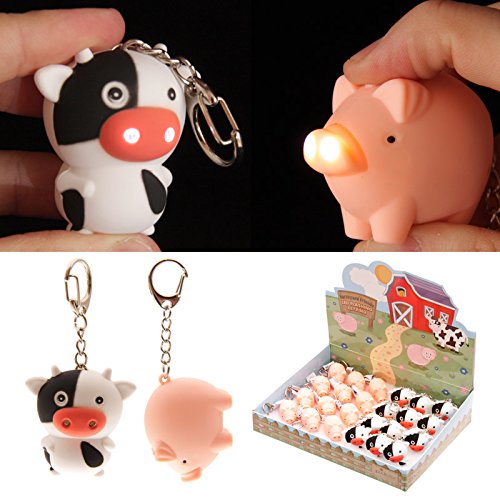 Cute L.E.D. Light Up Farmyard Keyring Key Chain Torch Pig or Cow