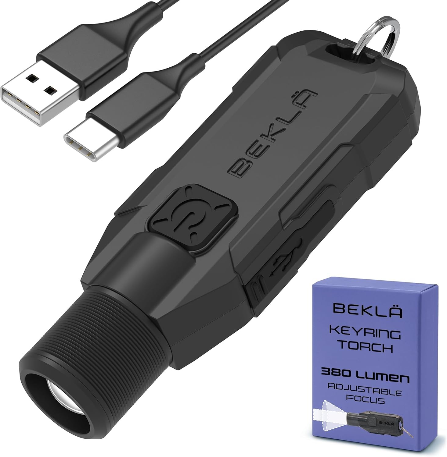 Keyring Torch Zoomable - 380 Lumen LED Small Flashlight, Rechargeable, EDC Mini
