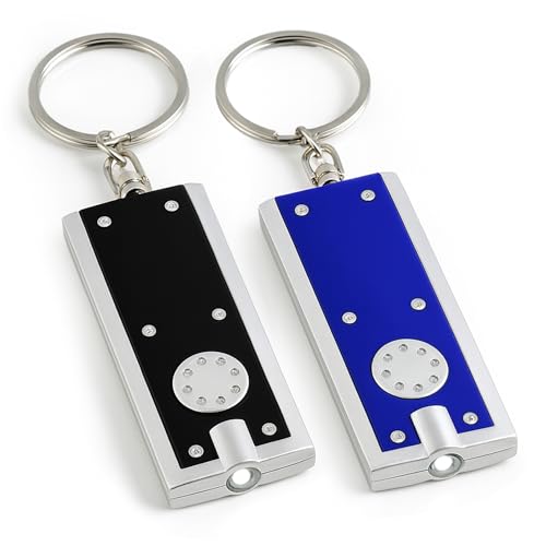 2Pk LED Keyring Torch Compact Pocket Light with Built in Batteries Mini Keychain