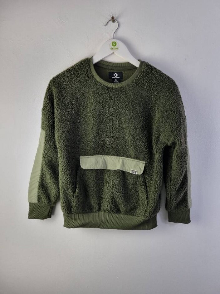Converse Elbow Patch Crew Borg Jumper Khaki Size: 10 - 11 Years