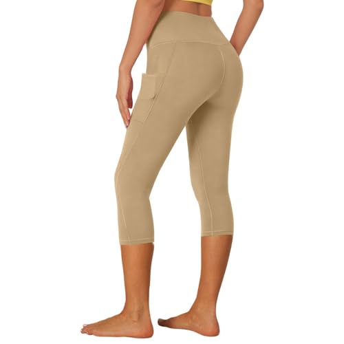 Ladies Leggings, Yoga Pants for Women Yoga Trousers High Waist Yoga Capri Pants Workout Leggings With Butt Lifting For Fitness Running (Khaki, XL)