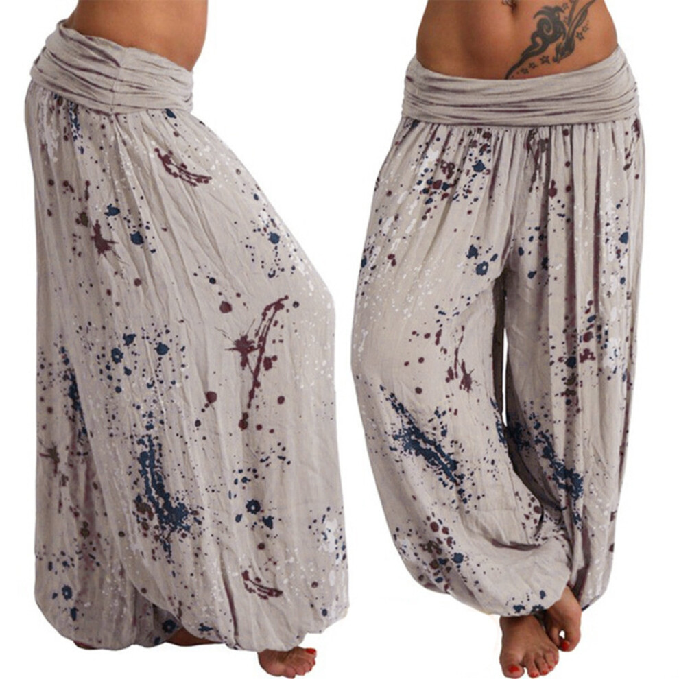 Palazzo Pants for Women Plus Size,High Waisted Baggy Hippie Gypsy Boho Pants, Ladies Printed Band Width Loose Leg Pants Womens Casual Khaki