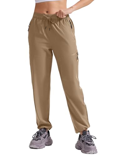 ZENGVEE Water Repellent Trousers Ladies Waterproof Lightweight Quick Dry Stretch Casual Trousers for Women UK Cargo Pants -C9330-Khaki-M