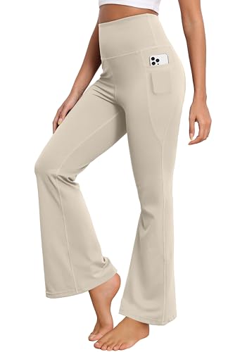 G4Free Yoga Pants for Women UK High Waist Flared Leggings Ladies Stretch Trousers Denim Style with Pockets Khaki,M
