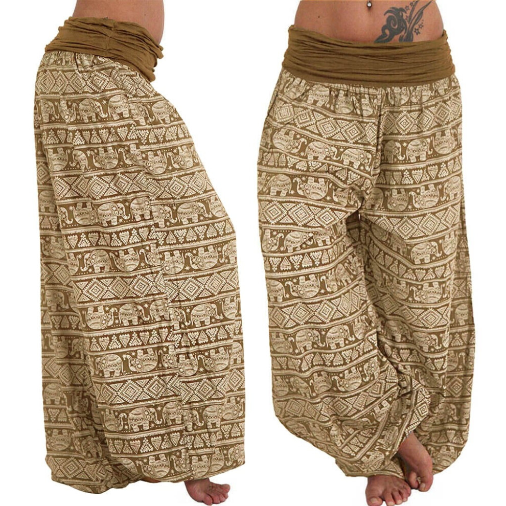 Palazzo Pants for Women,High Waisted Baggy Hippie Gypsy Boho Pants, Ladies Loose Band Womens Printed Leg Pants Width Casual Women Khaki