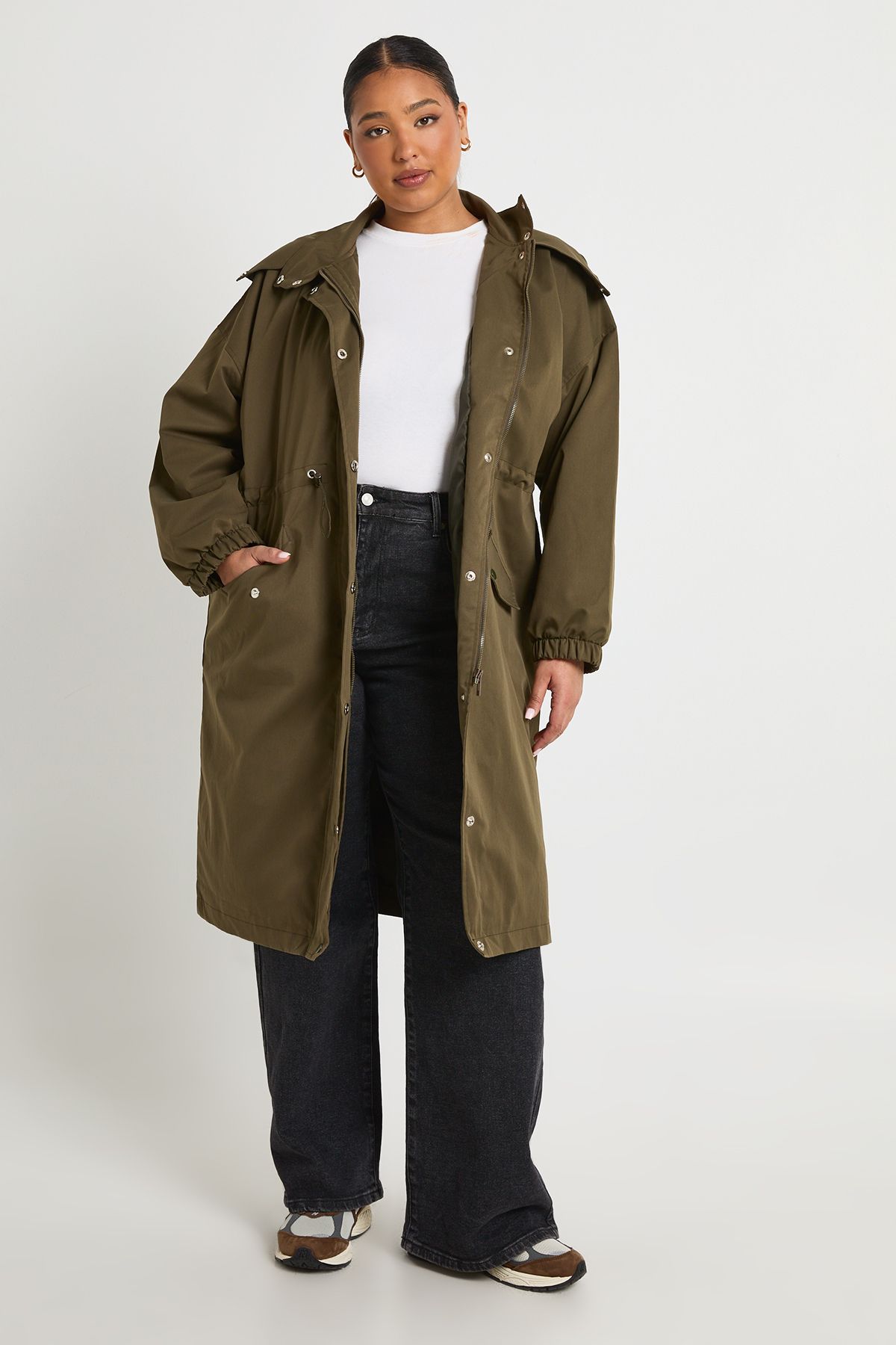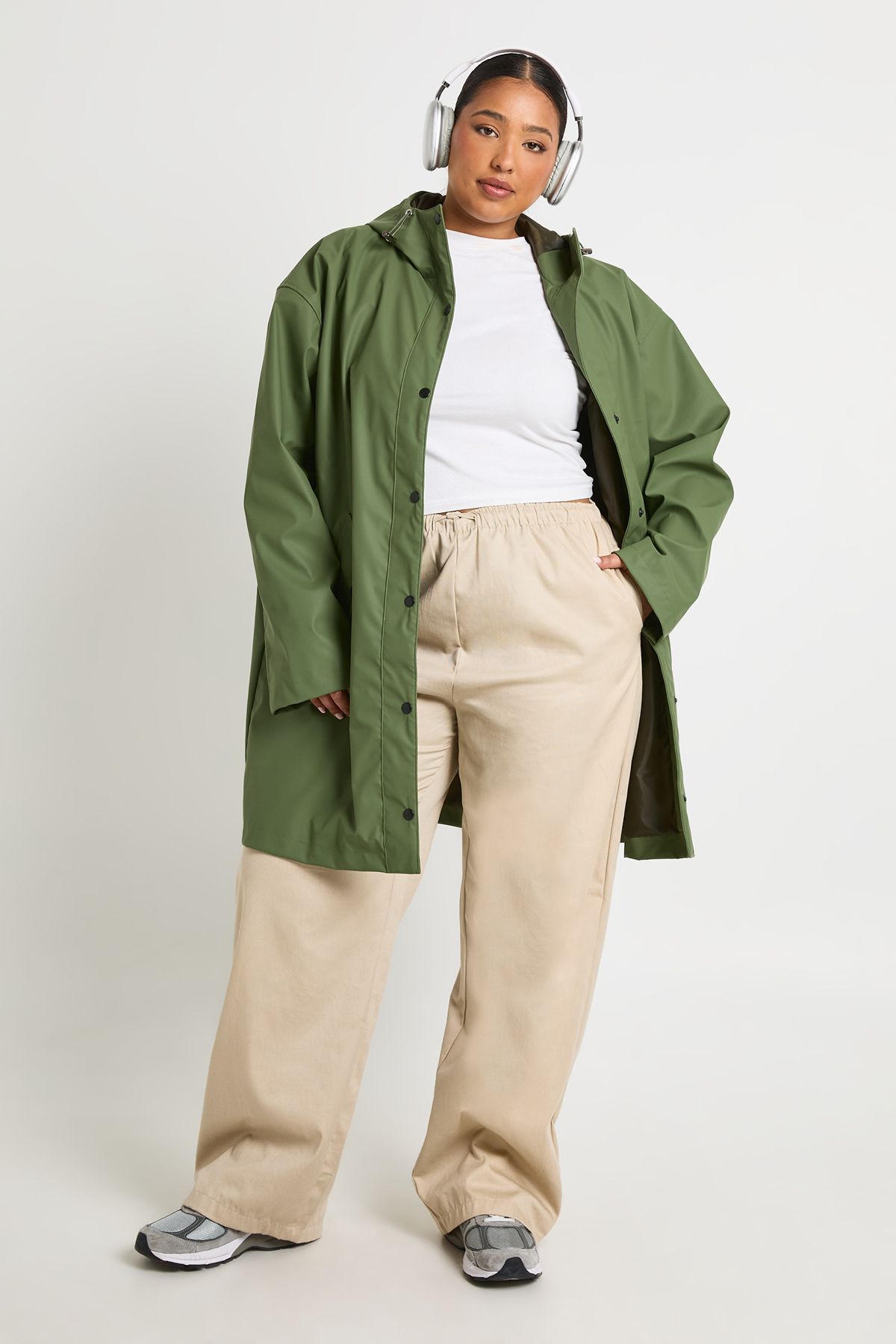 Boohoo Womens Plus Rubberised Rain Midi Parka Coat - Khaki - Size 20 UK
