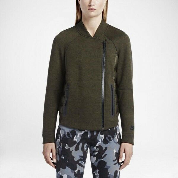 Women's Nike Tech Fleece Aeroloft 800 Moto Jacket Sz XS Cargo Khaki 683938 325
