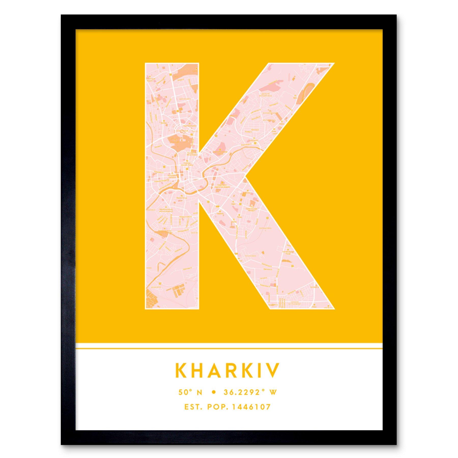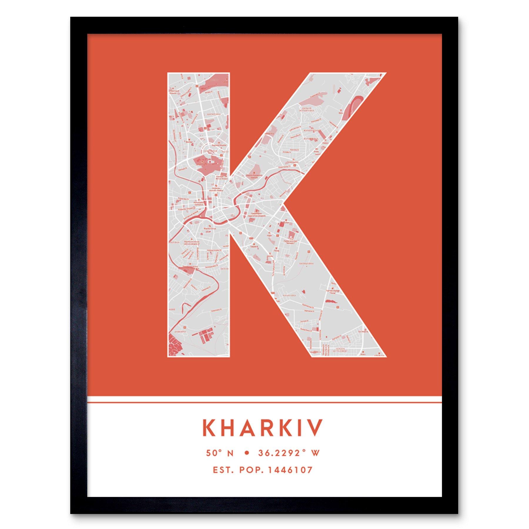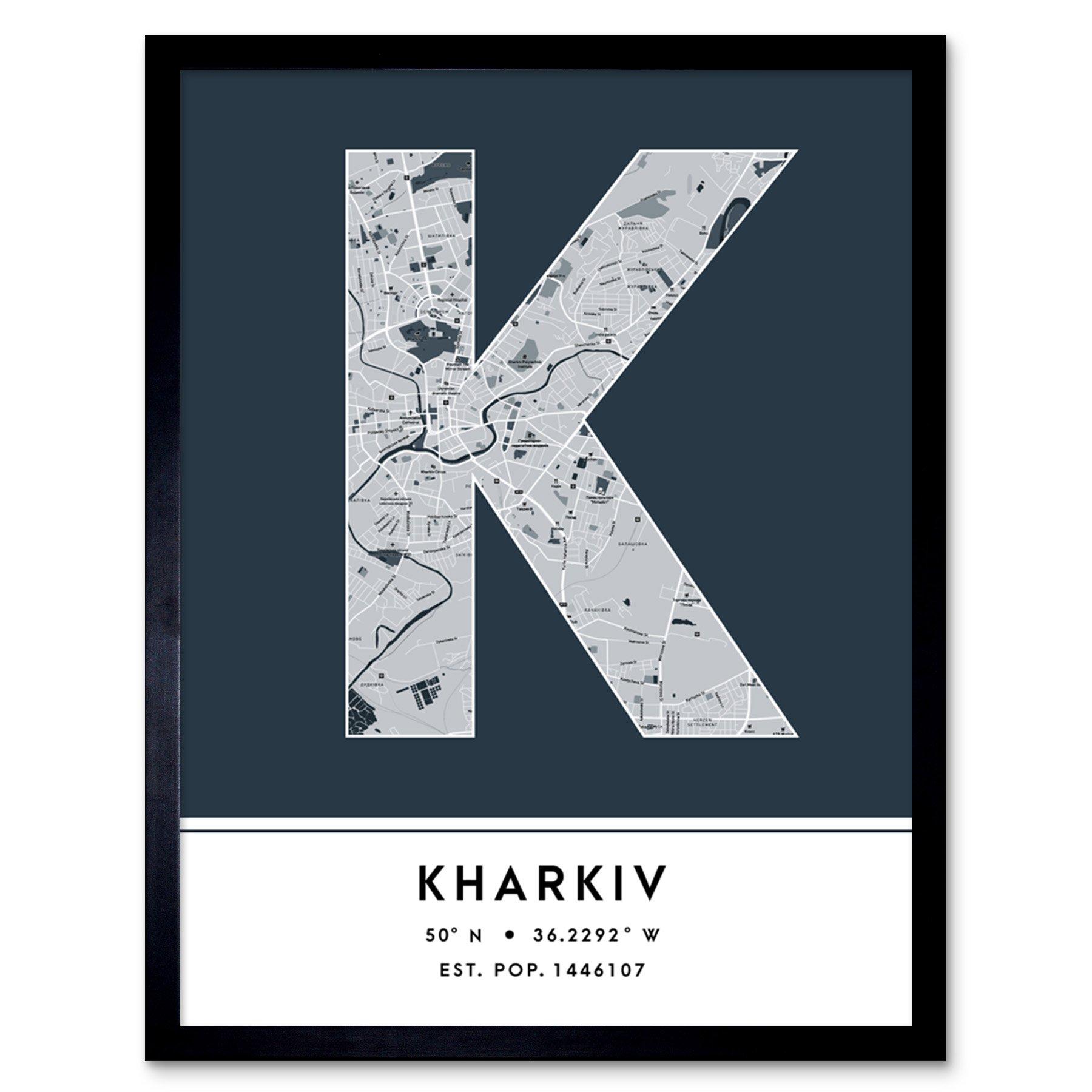 Kharkiv Ukraine City Map Modern Typography Stylish Letter Framed Word Wall Art Print Poster for Home Décor