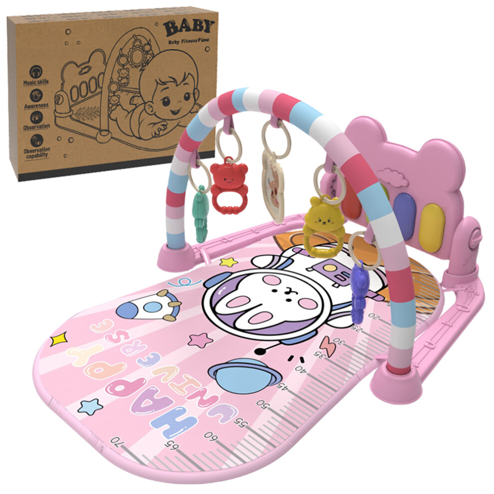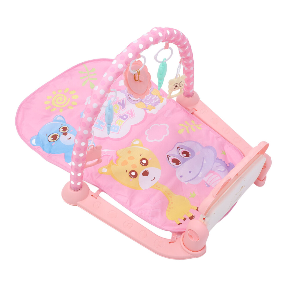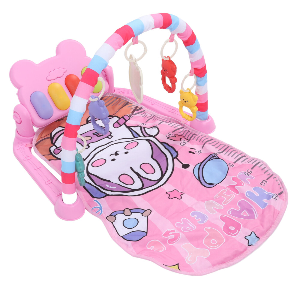 Baby Gym Play Mat Learning Sensory Sound Light Infant Kick Play Piano Mat with Rattles Toy Pink for Newborn