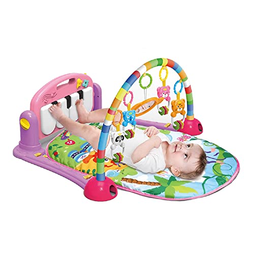 Baby Play Gym - Kick & Play Activity Mat with Piano, 5 Sensory Toys, Music, Lights, and Tummy Time Fun for Newborns to Toddlers with 4 LED Lights, 4 Press Keys, and 50 MIDI Pieces (Pink)
