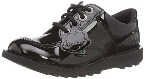 Kickers Girl's Kick Lo Leather Alternative Patent School Uniform Shoe | Smart Everyday School Look | Everyday Comfort Fit, Cushioned for All-Day Wear, Black, 2.5 UK Child