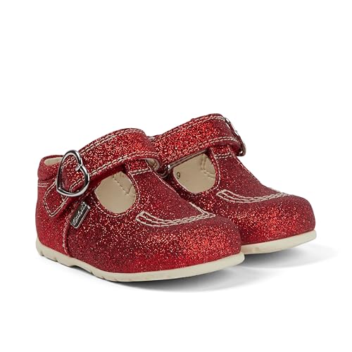 Kickers Unisex Baby Kick T Bar Baby Glitter Leather Shoes, Red, 0 UK Child
