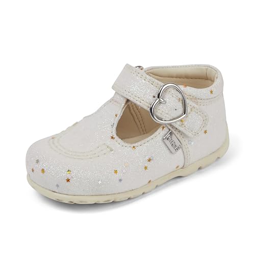 Kickers Unisex Baby Kick T Bar Baby Glitter Leather Shoes, White, 4 UK Child