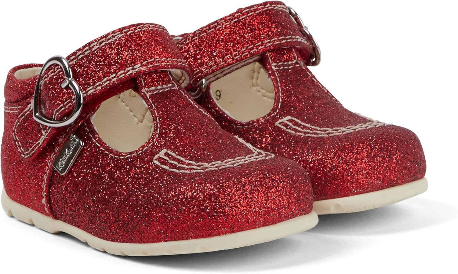Kickers Unisex Baby Kick T Bar Baby Glitter Leather Shoes, Red, 4 UK Child