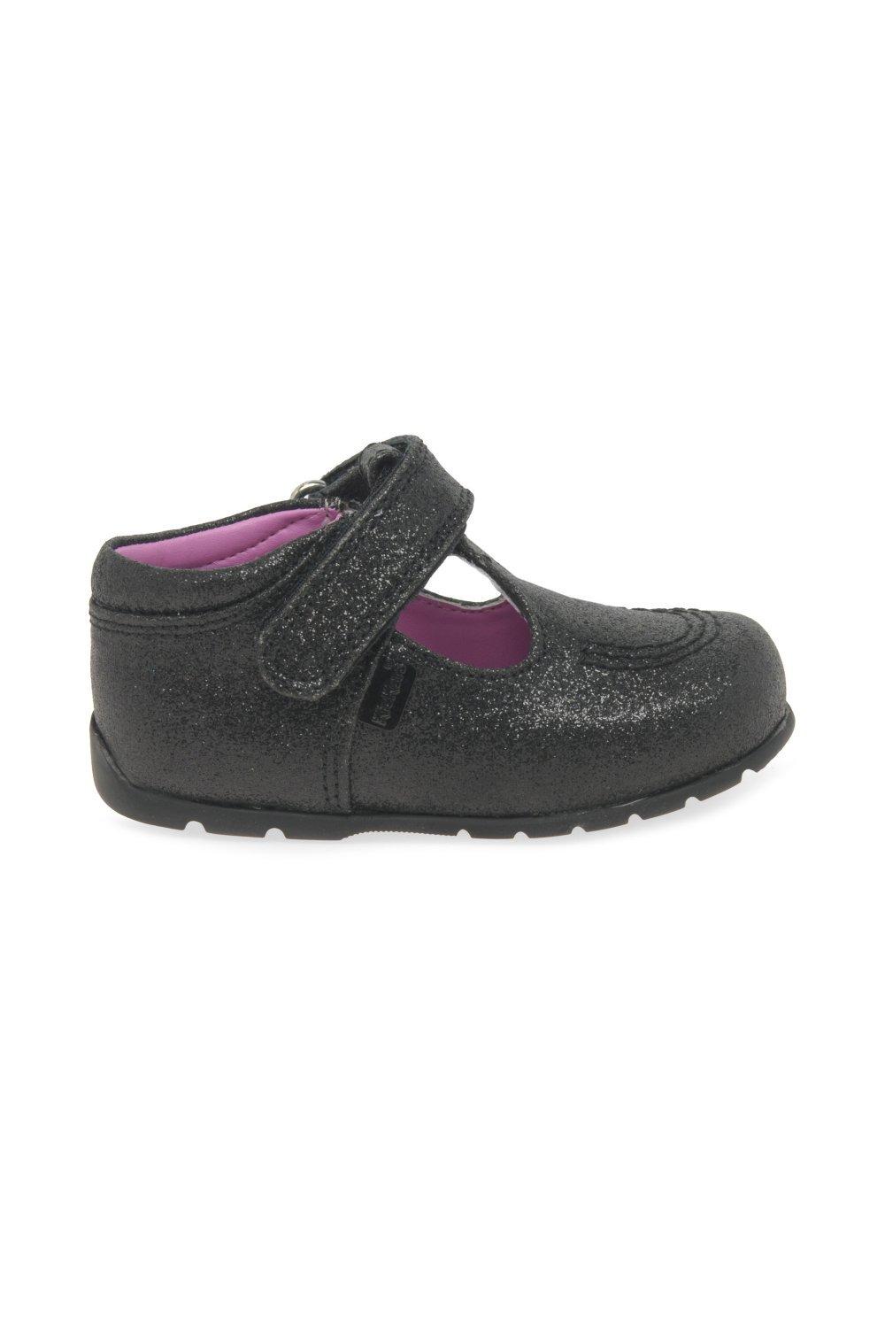 Kickers Unisex Baby Kick T Bar Baby Glitter Leather Shoes, White, 2 UK Child