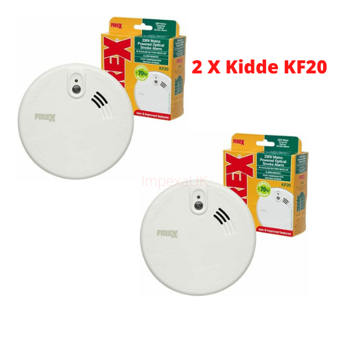2 X Kidde Firex KF20 Optical Mains Powered Smoke Alarm 230V 9v Battery Backup