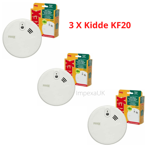 3 X Kidde Firex KF20 Optical Mains Powered Smoke Alarm 230V 9v Battery Backup