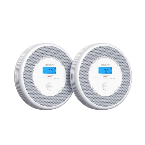 Smoke & Carbon Monoxide Alarm with Digital LCD Display, Combination Smoke Alarm and Carbon Monoxide Detector Replaceable Battery Smoke and CO Alarm for Your Home, Garage, Office