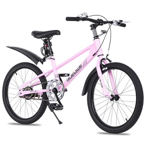 Bueuwe 20 24 Inch Mountain Bike for Kids Ages 6-12 Year Old, Kids' Bicycles with Dual Brakes, Adjustable Seat and Kickstand, Single Speed Bikes for Young Riders,Pink,20 Inch