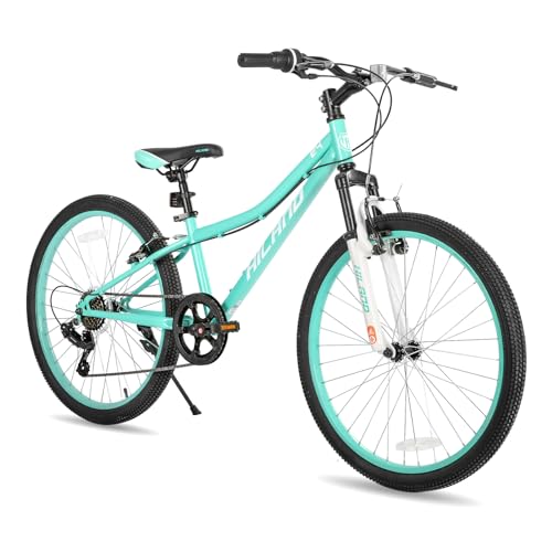 HILAND 24 Inch Kids Mountain Bike, 7 Speed MTB Bike for Boys Girls, Kids Mountain Bicycle with Suspension Fork V-brakes, Mint Green