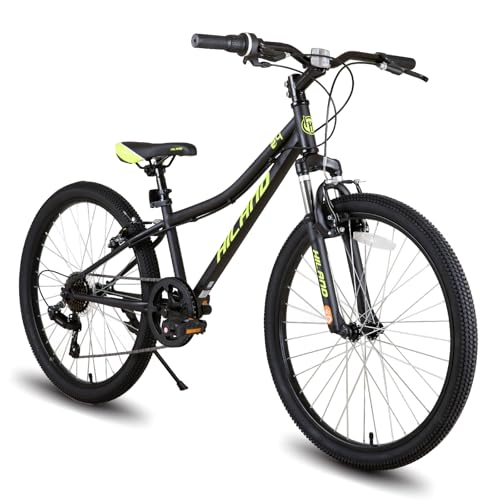 Hiland 24 Inch Kids Bike, 7 speed Kids Mountain Bike, Youth Boys Girls Mountain Bicycle with Suspension Fork V-brake, Black