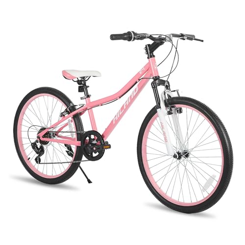 Hiland 24 Inch Kids Mountain Bike, 7 Speed Youth MTB Bike, Kids Boys Girls Mountain Bicycle with Suspension Fork V-brakes, Pink