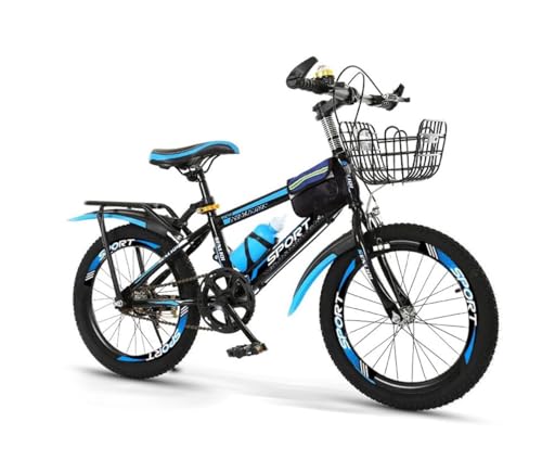LSBIKE 18/20/22/24 Inch Kids Mountain Bike for Boys and Girls, Junior MTB with Front Suspension, Dual Disc Brakes, Adjustable Seat & Handlebar, 5–14 Years, for Children (blue, 20 inch)
