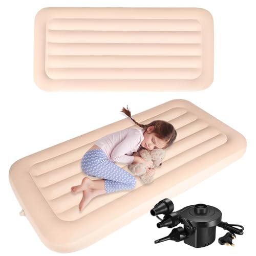 Luxchoice Toddler Travel Bed Kids Blow up Bed with Electric Air Pump and Raised Safety Edges Inflatable kids air bed Soft Flocked Surface Portable for Travel Sleepovers and Home Use