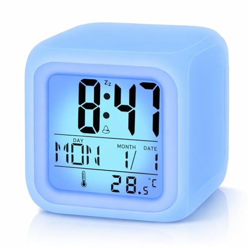 ZYCEHO Digital Alarm Clock, Kids Alarm Clock, 7-Color Changing Night Lights, Alarm Clocks Bedside with Temperature, Calendar, Snooze, Easy to Set Travel Digital Clock, Gifts for Boys & Girls