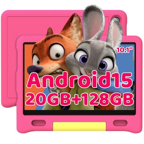 Laptok 10 Inch Kids Tablet, Android 15 Tablet for Kids with 20GB+128GB+1TB Expand|Octa-Core|Face ID|5MP+8MP|Parental Control|WiFi 6|BT 5.3|Dual Speakers|Protective Case(Pink)