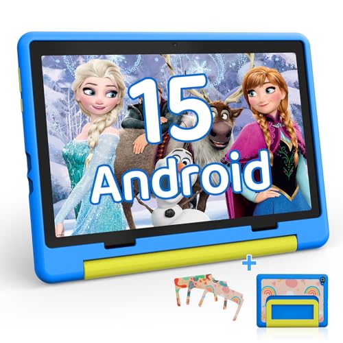 VASOUN 10 inch Kids Tablet,Android 15 Tablets with Lanyard 32GB, Five-Core,HD IPS Display,WiFi,Dual Camera,6000MAH Battery,Toddler Tablet for Kids (Blue)