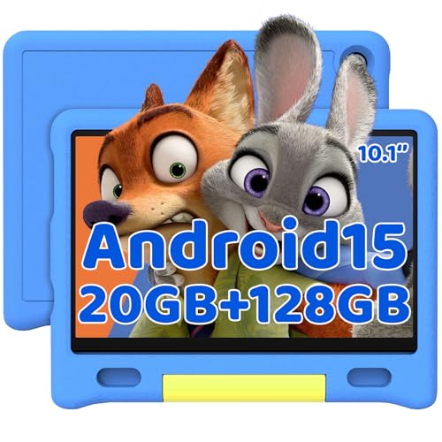 Laptok 10 Inch Kids Tablet, Android 15 Tablet for Kids with 20GB+128GB+1TB Expand|Octa-Core|Face ID|5MP+8MP|Parental Control|WiFi 6|BT 5.3|Dual Speakers|Protective Case(Blue)