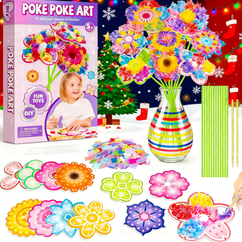 RIEYON Poke Poke Art - Flower Bouquet Kits for Kids 12 Flowers Art and Craft DIY Creative Activity Crafts Kits Mess-Free Fun for Kids Birthday Chr