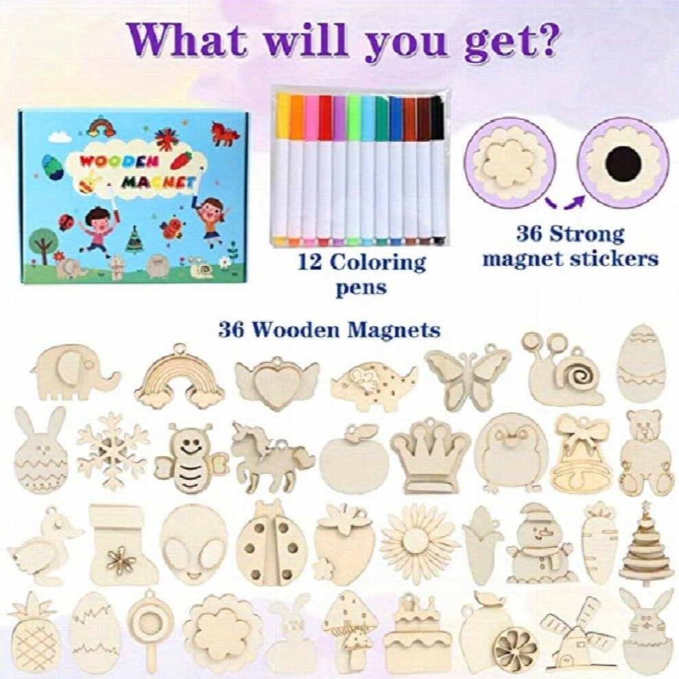 36pcs DIY Wooden Magnets Wooden Art Craft For Kids Art And Craft Supplies Party Birthday Gift Favors For Boys Girls Easter Crafts