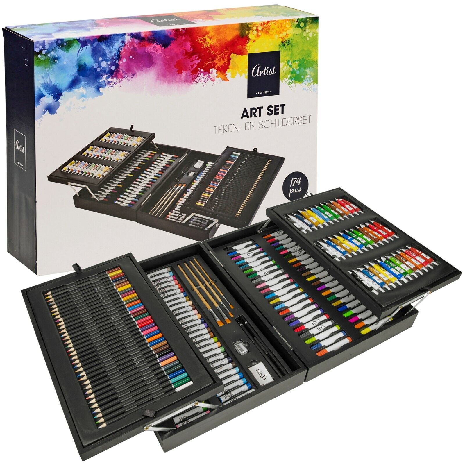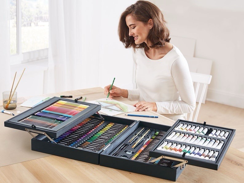 174 PCS Wooden Adult/Kids Art Set Colouring Drawing Pencil Painting Paint Case